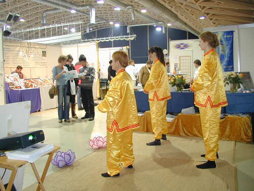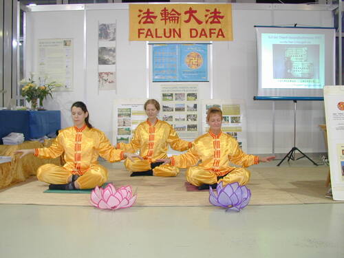 Erstmals stellten heuer die österreichischen Falun Gong Praktizierenden drei Mal ihre meditativen Übungen auf der großen Hauptbühne vor. Auch die körperlichen Auswirkungen wurden zur Sprache gebracht, denn es ist kein Geheimnis, dass die Übungen den Körper reinigen und dauerhaft gesund halten. Schon 1998 belegte eine von Medizinern der Universität Pekings durchgeführte Studie an 12.000 Praktizierenden eine Heilungsrate von 99,1%. Ebenso tragen die stressmindernden Faktoren der ruhigen und fließenden Übungen zu einem positiven und energiereichen neuen Lebensgefühl bei.