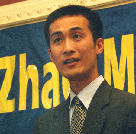 Zhao Ming studiert Informatik in Irland. Als Falun Gong - Praktizierender wurde er anläßlich des Besuches seiner Eltern in Peking zu Weihnachten 2000 verhaftet und ohne Gerichtsverfahren in ein Arbeitslager gesteckt. Dort war er unvorstellbarer Folter ausgesetzt. Auf Druck der irischen Regierung wurde er im März 2002 im Rollstuhl entlassen. Wegen der Folterungen spürt er bis heute nicht mehr seine Unterbeine. Er gehört zu den Mitanklägern der Strafanzeige in Deutschland. Hellmut Lumpi recherchierte über Zhao Ming´s Zeit im Arbeitslager.