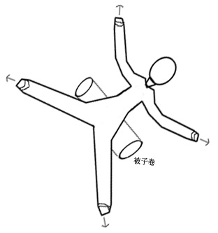 Dem hochgehobenen Opfer wird eine aufgerollte Steppdecke unter den Rücken gelegt, um die gedehnte Position beizubehalten. Der Körper wird so ständig in alle vier Richtungen gestreckt um größtmögliche Schmerzen hervorzurufen.