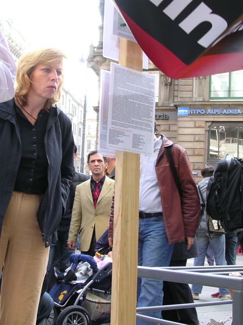 "Was mir besonders gut gefallen hat" meint Maria, eine Praktizierende aus Graz "ist, dass manche so lange gewartet haben, und nicht früher gehen wollten, bis sie von mir eine Zeitung mit Informationen zu Falun Gong erhalten haben".
