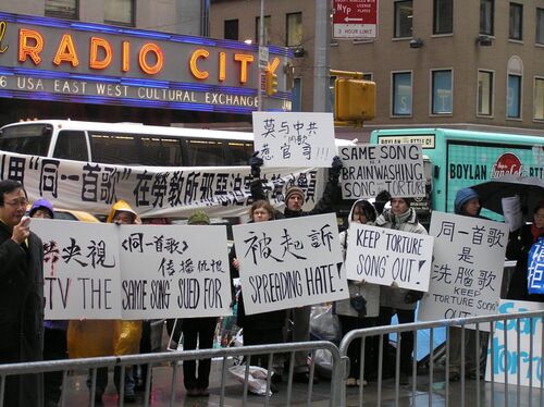 Dessen nicht genug, veranstaltet die KP Chinas in New York und in Toronto zwei Neujahrsgalen mit dem klingenden Namen "The Same Song". Die Städte werden seit Wochen mit tausenden Werbeplakaten überschwemmt. Folteropfer, die im Exil versuchen ihre Erinnerungen zu verarbeiten, werden täglich mit ihren qualvollen Folterungen konfrontiert.