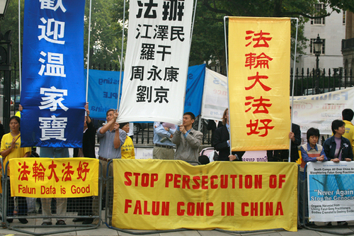 Am Mittwoch, den 13. September, besuchte der chinesische Premierminister Wen Jiabao London. Britische Falun Gong-Praktizierende hießen Wen Jiabao willkommen und forderten ihn gleichzeitig auf, seinen Blick auf die Menschenrechtsverletzungen gegen Falun Gong-Praktizierende durch die Kommunistische Partei Chinas zu richten. Auf einem Transparent forderten sie die Verurteilung der Hauptverantwortlichen bei der Verfolgung von Falun Gong.