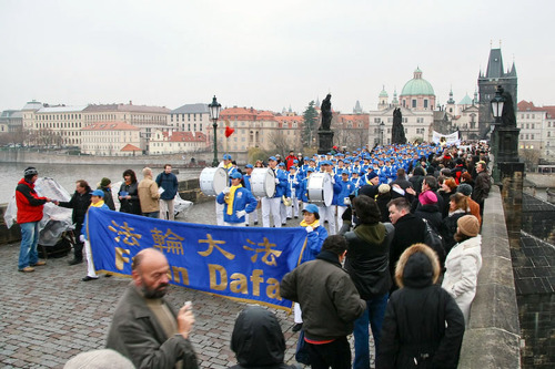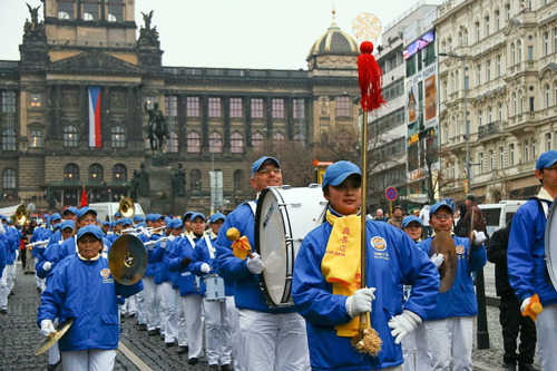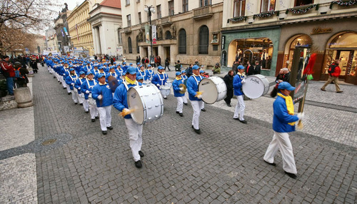 Im Anschluss an die Parade wurde eine kurze Pressekonferenz vor dem Gebäude des Präsidentenamtes abgehalten, um die tschechische Regierung aufzurufen, der brutalen Verfolgung in China Aufmerksamkeit zu widmen. Zum Schluss spielte das Orchester "Trommeln und Trompeten erschüttern die Welt der zehn Himmelsrichtungen", "Freude schöner Götterfunken" und einige weitere Werke für das Publikum. Gerade für ein Land, das vor wenigen Jahren selbst noch unter kommunistischer Herrschaft stand, ist es umso erfreulicher, dass die Menschen aufgeschlossen die Hintergründe des brutalen KPCh-Regimes in China verstehen und die Opfern dieser Verfolgung unterstützen.