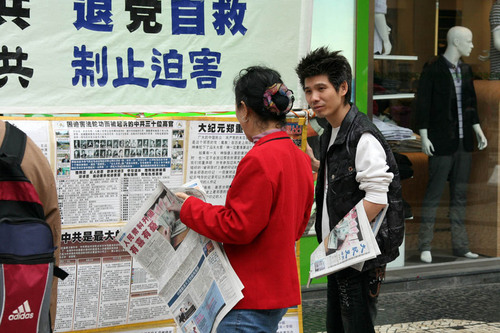 Macau hatte im Jahre 2010 aufgrund der Osterfeiertage und dem Qingming Festiv- al vier freie Tage. Falun Gong Praktizier- ende in Macau nahmen diese Gelegenheit wahr, um den Bewohnern und Touristen von Macau die brutale Verfolgung von Falun Gong durch das kommunistische Regime in China bekannt zu machen.