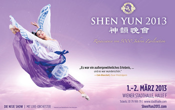 Applaus brandete auf, als die beiden Moderatoren die Künstler von Shen Yun zum Vorstellungsende noch einmal auf die Bühne baten – die Europapremiere von Shen Yun hinterließ am Freitag, den 1. März 2013, ein Publikum, das von den Darbietungen gerührt, berührt, verzaubert und zum Teil in höhere Sphären entrückt wurde. Die Halle F der Wiener Stadthalle ist an diesem Wochenende bereits zum fünften Mal der Schauplatz der Wiederkehr von 5.000 Jahren chinesischer Zivilisation.