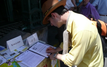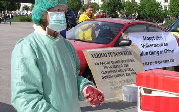 Im Vorfeld der olympischen Spiele versucht das kommunistische Regime in Peking anscheinend, Falun Gong Praktizierende in großem Maßstab zu verhaften und "von der Bildfläche verschwinden" zu lassen. In vielen Fällen kam es bereits Stunden bis Tage nach der Festnahme zum Tod der Praktizierenden. Falun Gong Praktizierende in Österreich nutzten den 19. April dazu, in einer Kundgebung auf dem Wiener Heldenplatz auf die verheerende Menschenrechtssituation in China im Jahr der Olympischen Spiele, besonders in Bezug auf Falun Gong, aufmerksam zu machen.