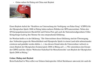 Am 11. September liefen um die 100 Personen durch die Innere Stadt Wiens, darunter Menschenrechtsaktivisten, Sportler und Schüler des Bundesoberstufen-Realgynasiums aus Wiener Neustadt, um auf die Menschenrechtsverletzungen vor und während den Olympischen Sommerspielen in Peking 2008 in den medialen Blickpunkt zu bringen. Das unterstützen nicht nur namhafte Spitzensportler, hochrangige Politiker, sondern auch Größen aus der Musikbranche. Die Fackel der Menschenrechte wird innerhalb eines Jahres durch mehr als 100 Städte auf allen fünf Kontinenten getragen.
