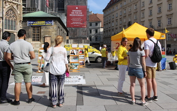 Theresia Köpf, Farzana Farhad -von der Bangladesch-Österreichischen Kulturakademie, Yong Wang -Obmann Österreichischer Falun Dafa Verein