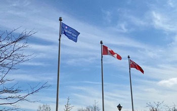 Eine „Falun Dafa Day“ Flagge wurde am 7. Mai vor dem Rathaus in Niagara Falls, Kanada, gehisst.